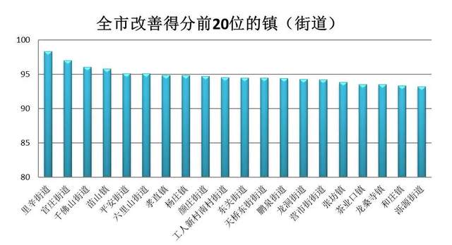 进入全市改善排名前20名的镇(街道)中,莱芜区5个,历下区3个,市中区、天桥区、钢城区、商河县各2个,槐荫区、长清区、章丘区、平阴县各1个。改善排名正数第1至20位分别为里辛街道、官庄街道、千佛山街道、苗山镇、平安街道、六里山街道、孝直镇、杨庄镇、颜庄街道、工人新村南村街道、东关街道、天桥东街街道、鹏泉街道、龙洞街道、营市街街道、张坊镇、茶业口镇、龙桑寺镇、和庄镇、泺源街道。