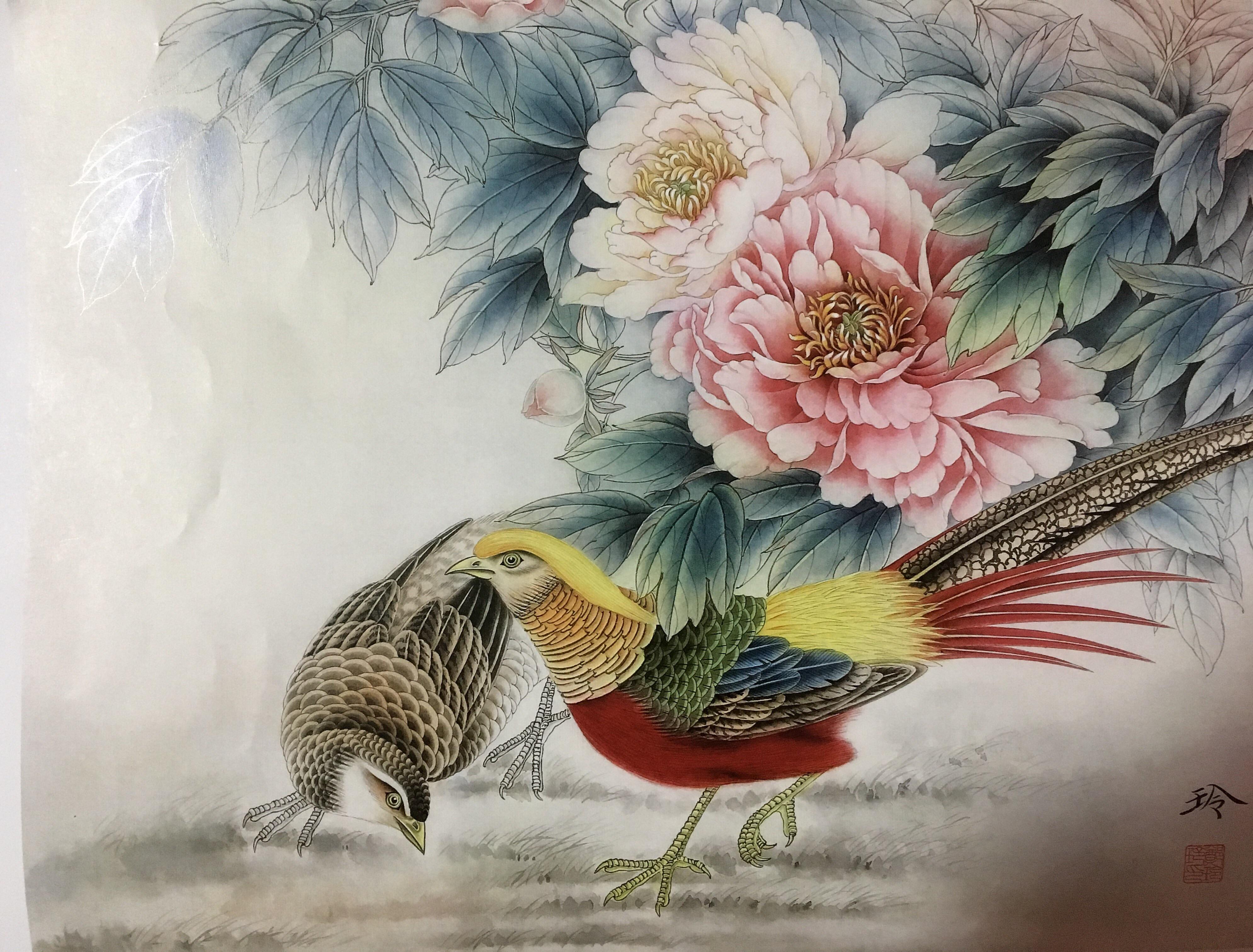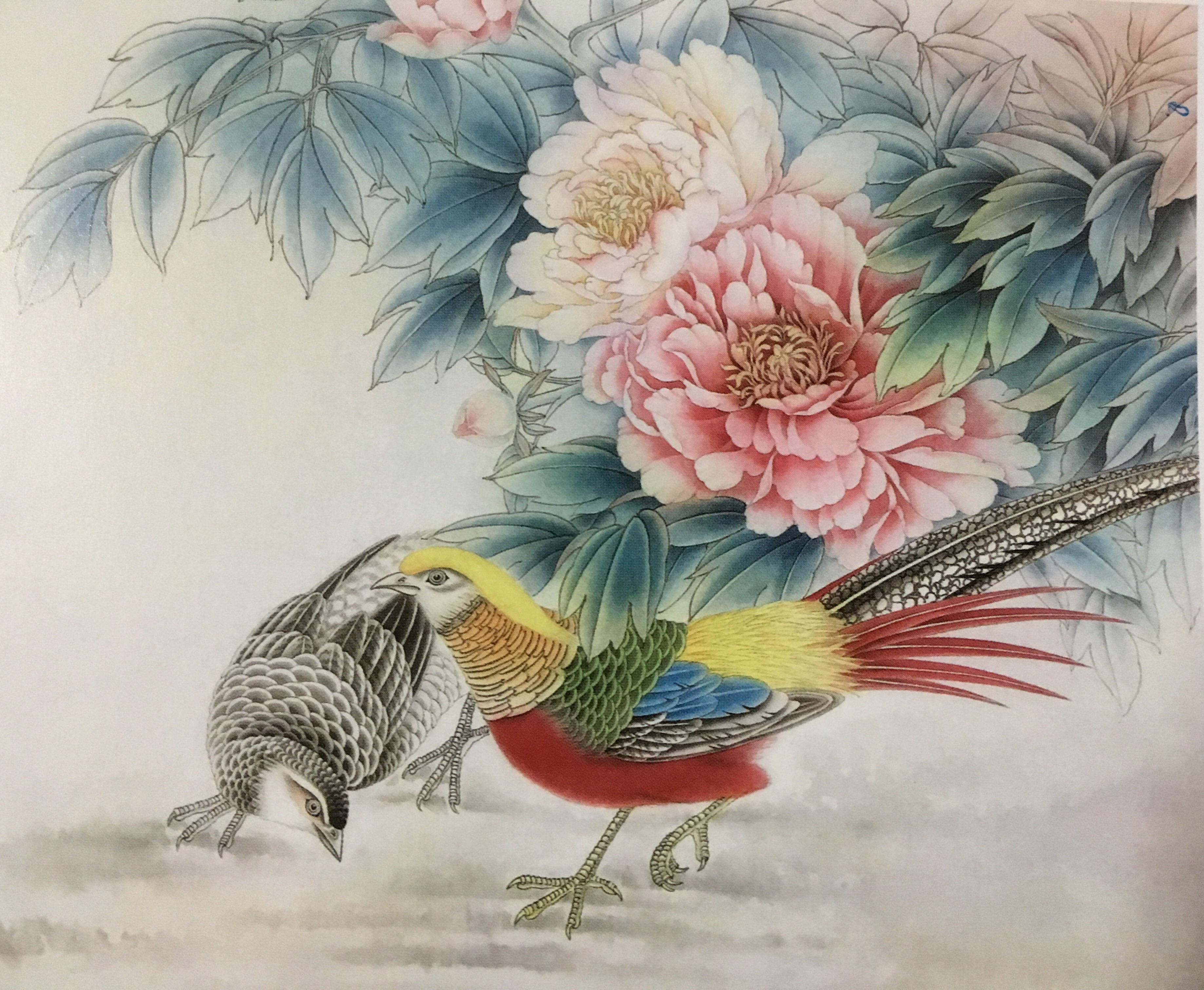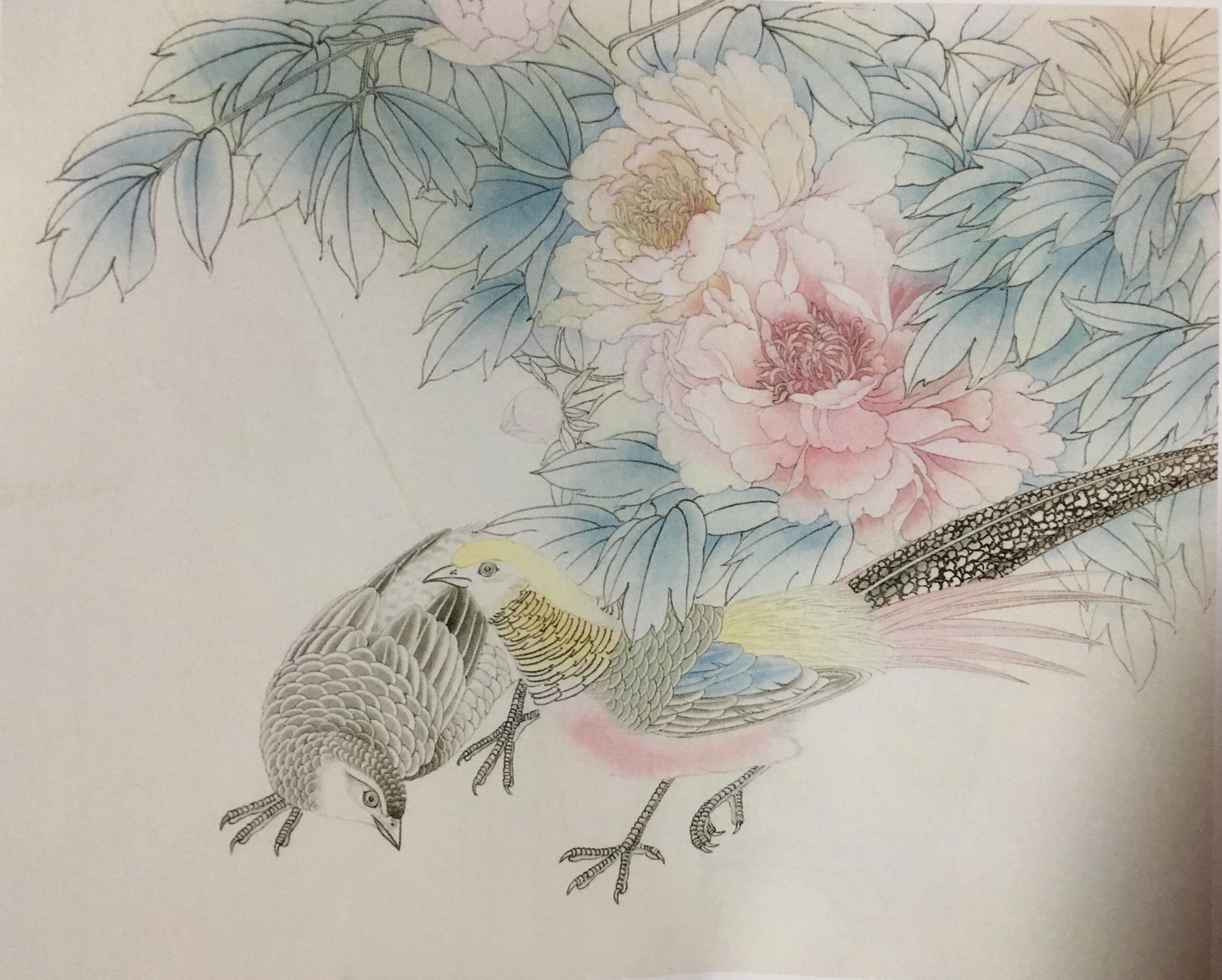 【钢城区文化馆】牡丹锦鸡(工笔画)01