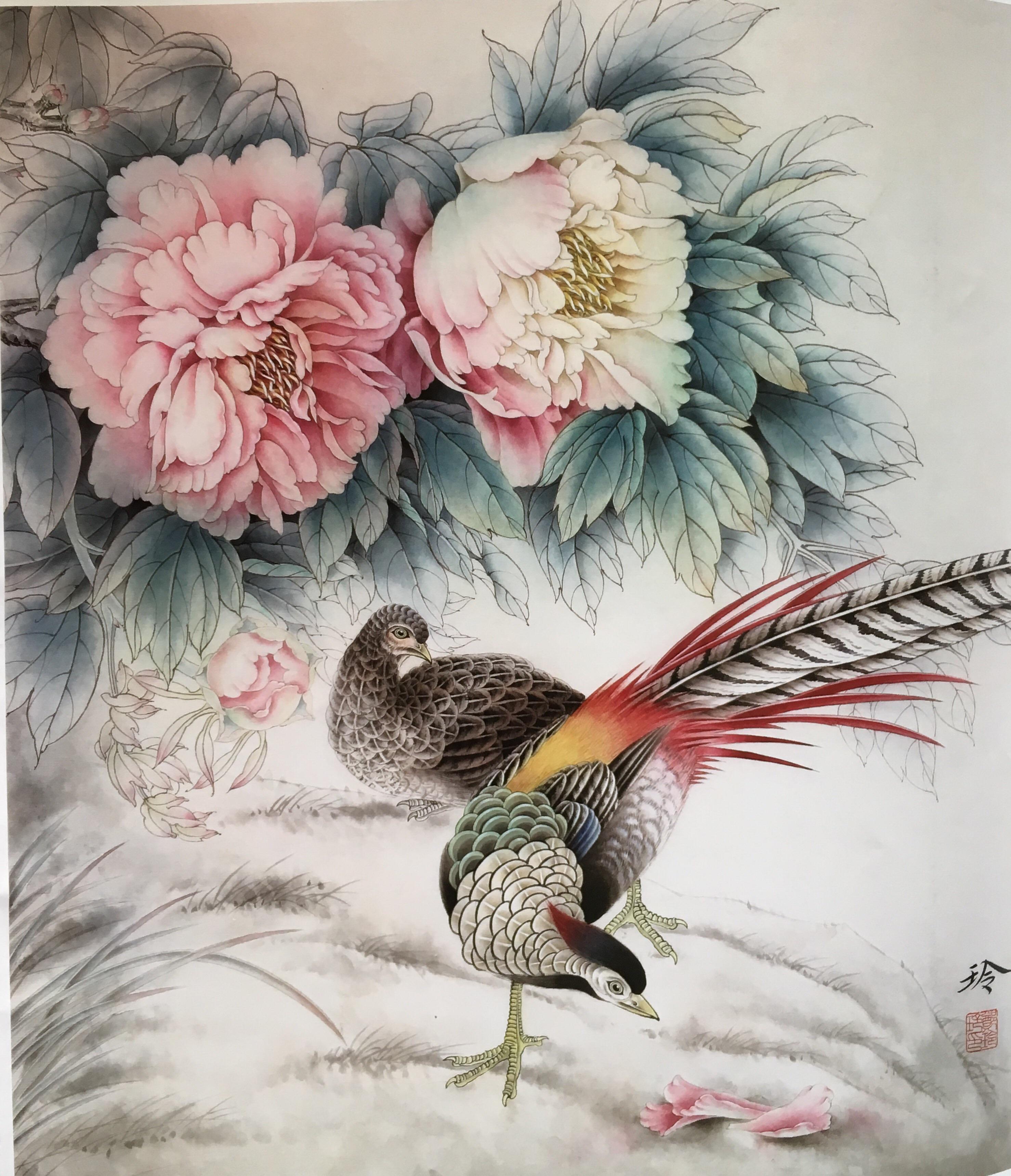 【钢城区文化馆】牡丹锦鸡(工笔画)11