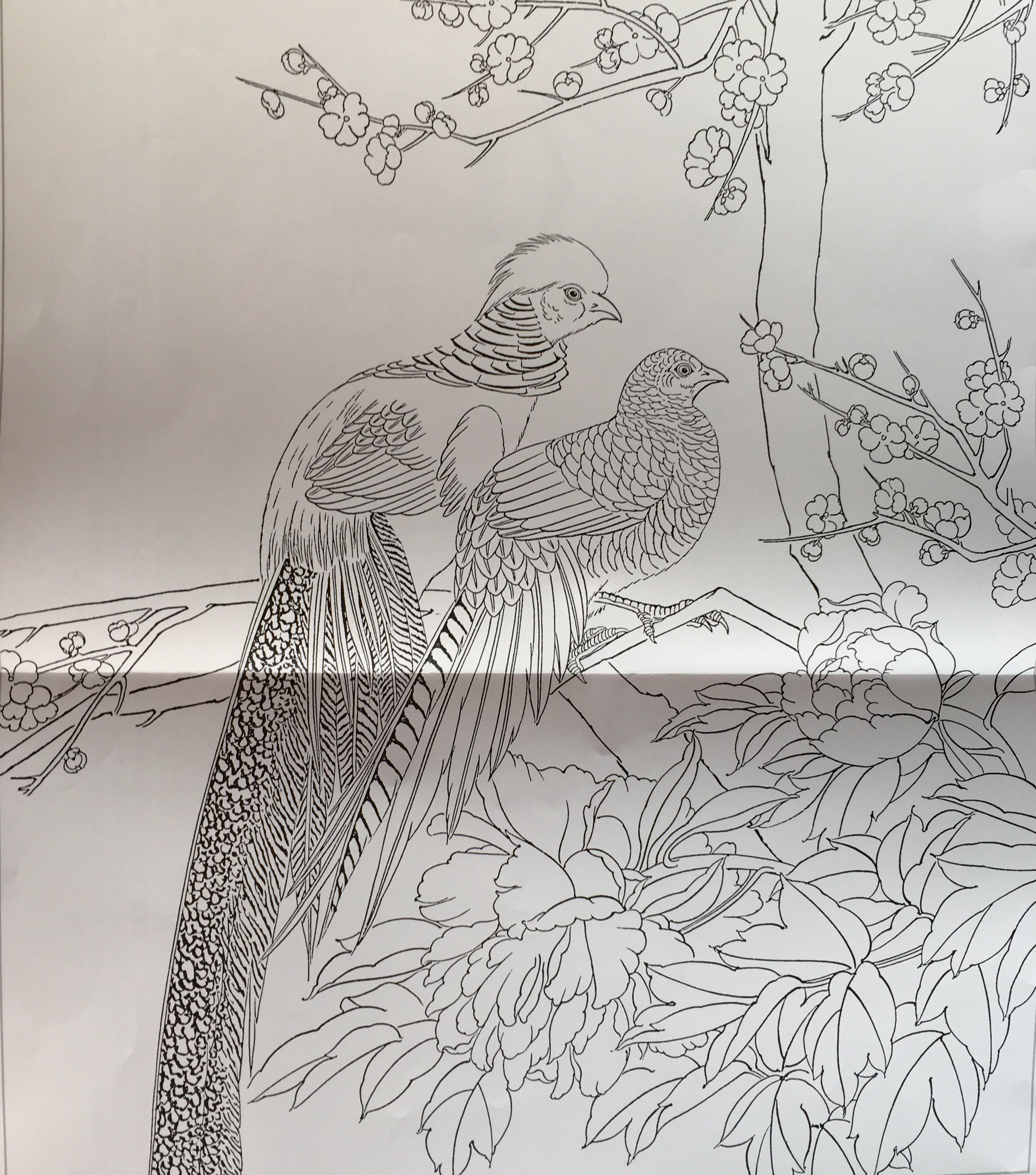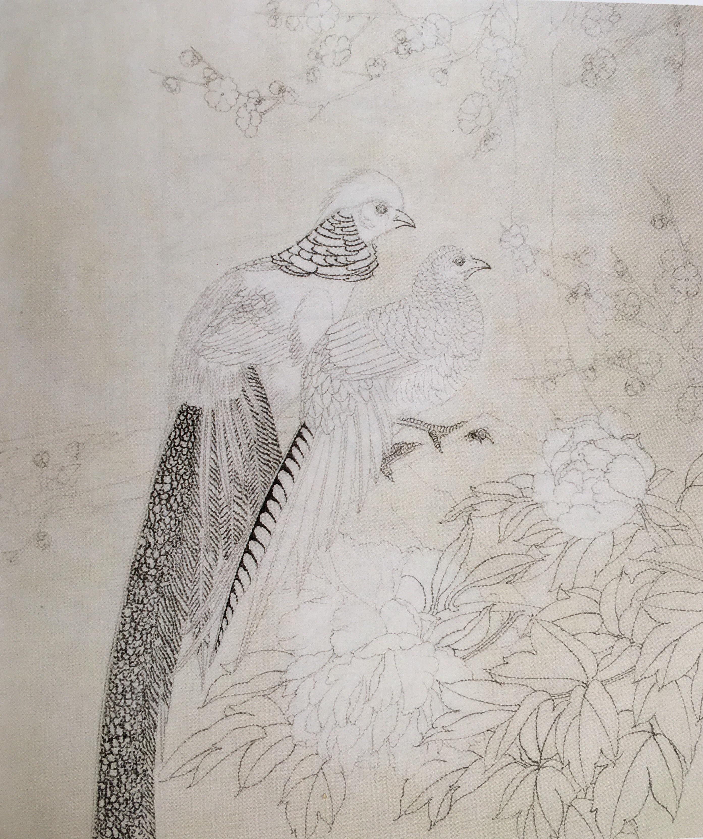 色,每次淡且均匀地上色多次。锦鸡、花头、