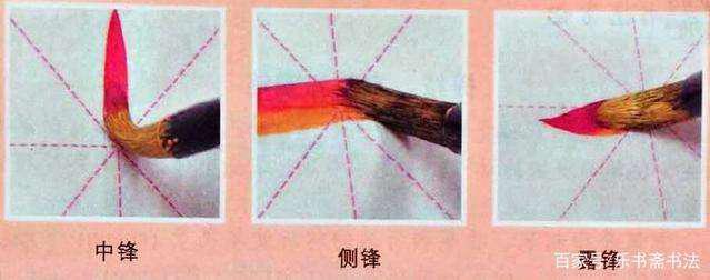 3.中锋和侧锋。中锋就是指在行笔的过程中,笔尖处在笔画的中间,不偏转,笔画两边圆润不毛糙,要做到这个必须要使笔杆垂直且锋正。这种笔法从古至今都是书法当中所不变的真理,所谓用笔千古不易。甚至有人提出要笔笔中锋,我个人认为追求笔笔中锋是好的,但是却很难做到,所以中锋和侧锋结合使用会更好。而侧锋就是指笔锋偏离笔画的正中间,形成一面光滑一面粗糙的线条,一般不常用。