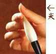 过往书家对五指执笔有文字上的说明,但相对不直观,故不作重复。如果这一幅静态的图片未能让你了解执笔的方法,可以待会拖到后面看书法家在写字的时候如何执笔的视频。在此说明的是,运笔过程笔左右挥舞是正常的,但不应当歪斜,倾倒到一边去。