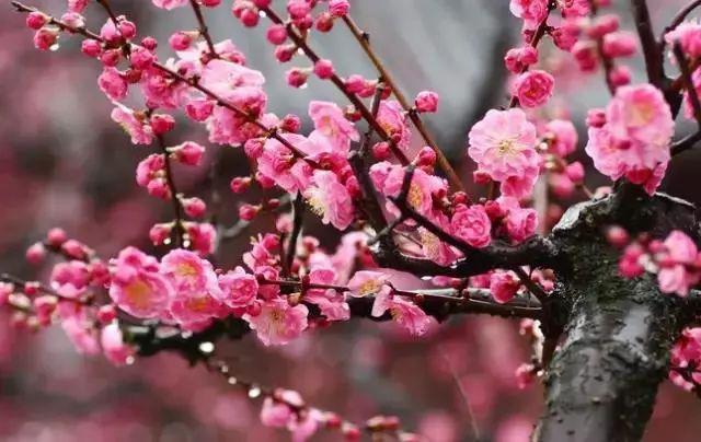春天的江苏大学,红了梅,粉了林,在雾里形成了亦真亦幻的烟雨梅林。