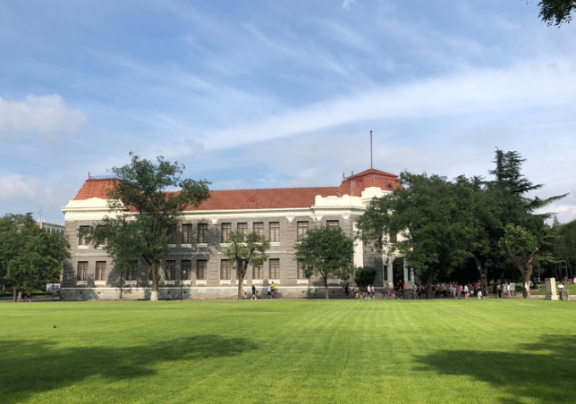 从礼堂向南望,左为清华学堂,右为第二教学楼。
