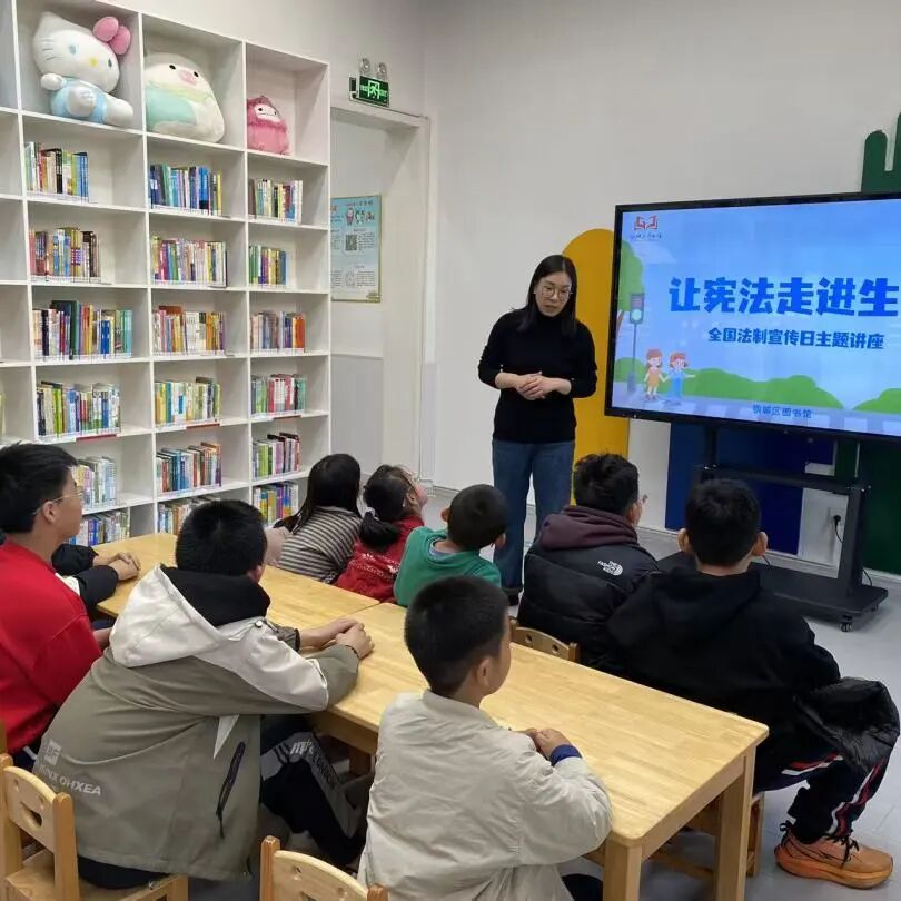 “宪法是什么颜色的?”“我们小朋友能从宪法里获得哪些保护?”带着这些提问,11月30日,钢城区图书馆专为小读者打造的“让宪法走进生活”主题讲座,快一起来重温这场别开生面的法治启蒙课吧! 活动现场 活动现场为了让抽象的宪法知识变得鲜活易懂,馆内工作人员利用视频从“我们出生后享有的权利”到“在学校要遵守的规则与宪法的联系”,从“过马路为什么要走斑马线”到“遇到困难该向谁求助”,嘉宾结合动画短片、真实案例和趣味漫画,把宪法中与青少年息息相关的内容讲得明明白白。 此次“让宪法走进生活”主题讲座,以小读者喜闻乐见的方式搭建起宪法与生活的桥梁,不仅让孩子们了解到宪法并非遥远的条文,而是时刻守护在身边的“权利保障书”,更在他们心中播下了“学法、懂法、守法、用法”的种子。 编辑:张哲瑄 主审:张红