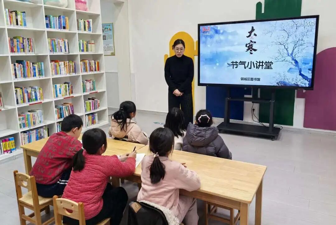 二十四节气讲堂 钢城区图书馆 ▷▷▷ 寒风裹着年味渐浓,大寒踏着冬韵将至,1月18日,钢城区图书馆举办二十四节气小讲堂《大寒》,带领小读者们在欢声笑语中邂逅冬日里的传统文化。 ▷▷▷ ▷▷ 馆内工作人员用生动俏皮的语言开启大寒科普之旅。从“大寒为何是一年中最冷的节气”,到“大寒三候——鸡乳、征鸟厉疾、水泽腹坚”的自然奥秘,再到南北各地的民俗习惯,一个个知识点搭配趣味图片、动画片段点燃了孩子们的好奇心。 这场大寒小讲堂,让孩子们了解大寒的气候特点、民俗文化与自然规律,培养观察力与探索欲。 编辑:张哲瑄 审核:张红 审核:赵璟 审签:石云