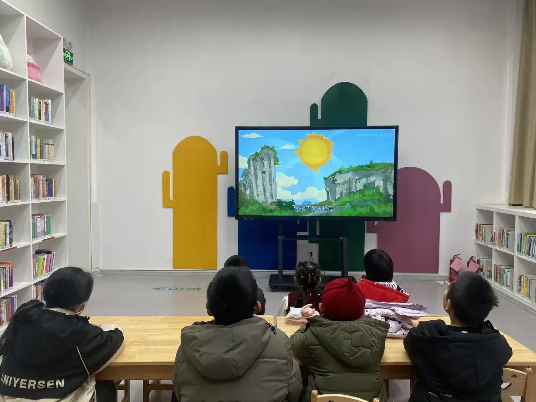 馆内工作人员为小读者们播放讲堂视频,视频中生动的图画带领小读者们探寻立春的来源和传统习俗,从 “咬春”“打春” 的民俗趣事,到春日养生的小知识,再到咏春诗词的经典品读,让小读者们在视频中感受中华传统文化的魅力。
