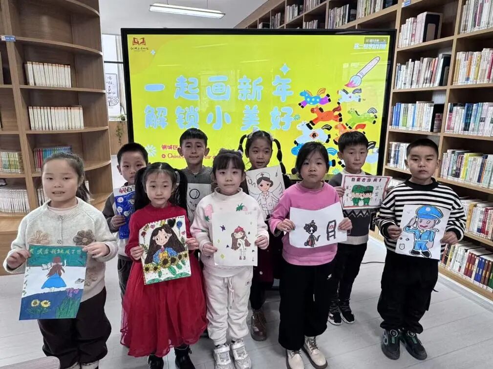 “一起画新年,解锁小美好”钢城区图书馆画笔涂涂乐,新年添欢喜🥰,2月7日,钢城区图书馆举办“一起画新年,解锁小美好”绘画活动,好多可爱的小读者们齐聚图书馆,用小小的画笔,许下新年的愿望!HAPPY CHINESE NEW YEAR画出你心中的新年小朋友们化身小小艺术家,馆内工作人员鼓励小朋友们大胆想象,把对新年的期待、对美好的向往,都藏进每一笔色彩里。有的小读者画了老师的模样,说以后想做一名老师;有的小朋友画了可爱的警察形象,说以后要做一名正义的警察;还有的小朋友想做一名医生,一笔一画都充满童趣,每一幅作品都藏着纯粹的热爱与期待🥳这场绘画活动给小朋友们提供了一个展示自我、发挥创意的平台,锻炼动手能力和想象力,让小读者们在新年中许下了自己美好的心愿!编辑:张哲瑄审核:张红审核:赵璟审签:石云